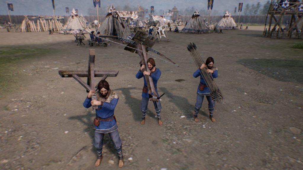 Стрелки, обладающие приличным уроном, но имеющие долгую перезарядку и низкую далность. Обладают уникальной способностью стрелять сразу, что достаточно полезно. После выстрела могут отбежать и зарядть арбалеты и затем снова провести мгновенный выстрел. Благодаря этому могут хорошо противостоять коннице, которая может не успеть добежать до них, даже из тумана, т.к. получит порцию болтов вперед. Советую иметь 2 или 3 отряда сразу, т.к. один такой залп перед боем, может выкосить почти полный отряд до сближения противника с вашей пехотой, чего могут не успеть сделать прочие лучники. Могут неплохо перестреливаться с другими лучниками, и побеждать из за права первого выстрела, однако все же арбалеты проигрывают англосакским лучникам под броней(не важно какой) или грейдами на скорострельность. Если у англичанина нет грейдов или армора, 2 отряда арбалетчиков выкосят 2 отряда англичан, 3 выкосят 3 и т.д., так что на старте, можно задоминировать над англичанами при помощи арбалетов. Имеют абилку “погоня”(увеличивает скорость и добавляет защиту в дальнем бою на 2 плюса), которую необходимо использовать перед началом перестрелки с вражескими лучниками. Иногда ее можно использовать для быстрого перемещения по полю боя (все же зачастую, лучше оставить на перестрелку с лучниками). Несмотря на большое количество преимуществ, не советую делать акцент армии на них(например как англосакс делает на лучников или даже славяне), т.к. в позднем лейте проигрывают в хлам англосаксам и проигрывают славянам под градом стрел. Их задача больше как поддержка, а не как костяк армии.