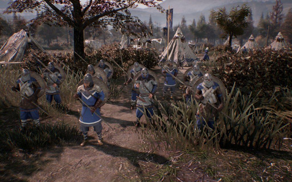 Базовый отряд немцев. Для первичных юнитов, имеют хорошие показатели здоровья и характерным для всех немцев – высокий боевой дух. Но все же являются слабейшим видом двуручников в игре, уступая берсеркам Викингов и хускарлам Англичан. Имеют достаточно сильный натиск, особенно в спину. Спокойно уничтожают славянскую дружину с щитами и в оборонительной стойке могут достаточное количество времени держаться против копьеносцев викингов. Обладают крайне полезной абилкой, на снижение защиты. Применение данной способности разнообразное. Например при лобовом натиске, до столкновения можно сразу жмякнуть для выгодного размена, таким образом враг потеряет от натиска больше здоровья/юнитов. Можно садиться на хвост другому отряду и также использоваться снижение защиты(пример, деруться копья друг с другом, сбоку заходит отряд тесаков, юзает абилку и ваши копья начинают эффективней пробивать другие копья, в это время можно оставить ваших тесаков помогать или отступить, дебаф все равно будет висеть). На т3(класс технологий 3), имеют также наиполезнейшую абилку “запугивание”, которое заставляет противников отступить, однако запугивание не работает если противник в зищитной стойке или под стеной копий. Также абилку нельзя заюзать если в отряде тесаков осталось 4 человека(вроде четыре). Здесь также большая вариативность применения. Можем юзануть для того чтобы продавить фланг, или чтобы убрать пехоту прикрывающую лучников. Можно выгонять с точки и т.д.; Все варианты описать невозможно, нужно понимать когда пользоваться. В позднем же лейте тесаки становяться достаточно слабыми и главная их функция становиться сидеть в засаде и напасть в спину противника либо же на щитовиков.