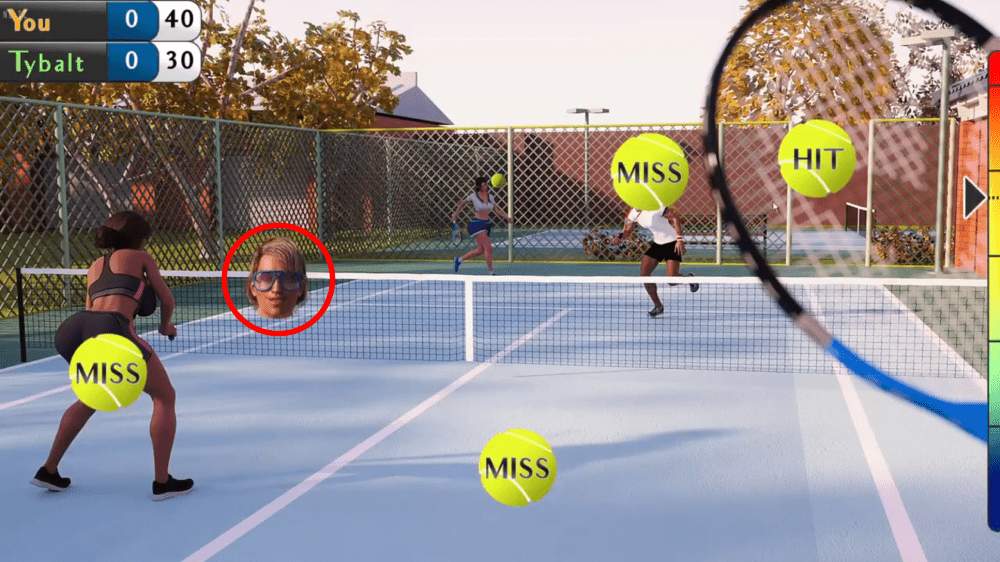 Нажимайте на мяч с надписью HIT во время того, как шкала будет на красном пике. Не переживайте, если проигрываете второй сет, это скрипты игры и в третьем вы победите, если будете делать все правильно.