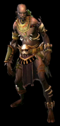 Колдун призывает различных существ, а также души умерших, заставляя их исполнять его волю. Окружая себя призванными зомби и другими потусторонними тварями, он забрасывает противника черепами-бомбами, создает облака едкого яда и накладывает на врага страшные проклятия.