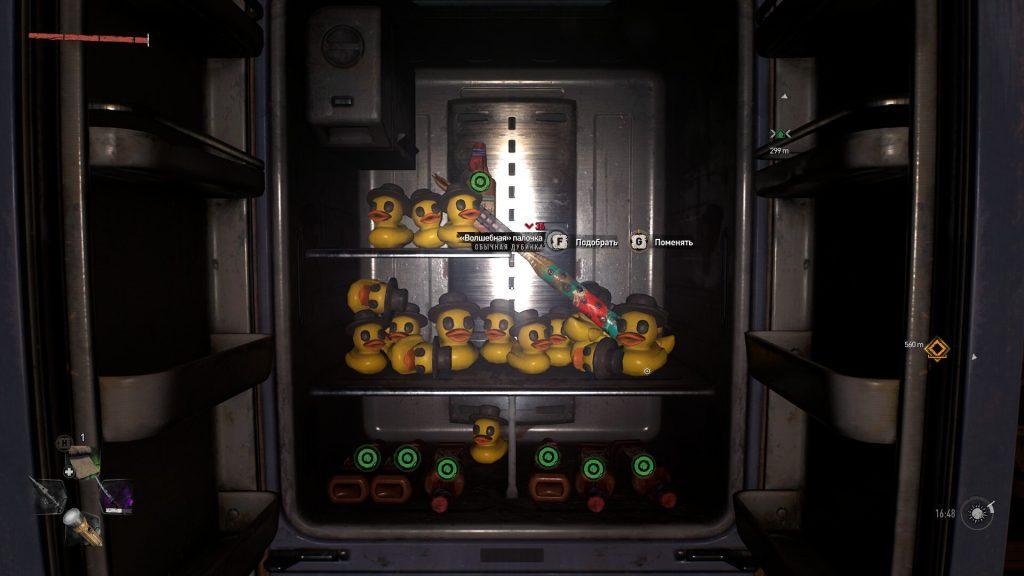 После получения пальцестрела, исследуем комнаты, кстати в них можно найти холодильник с уточками и прикольной, но бесполезной битой.