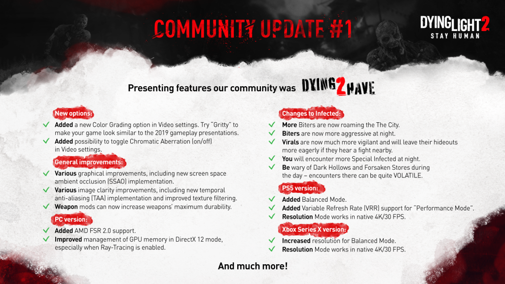 Обновление сообщества #1 включает в себя очень востребованные функции, которые есть у наших игроков Dying Light 2:
