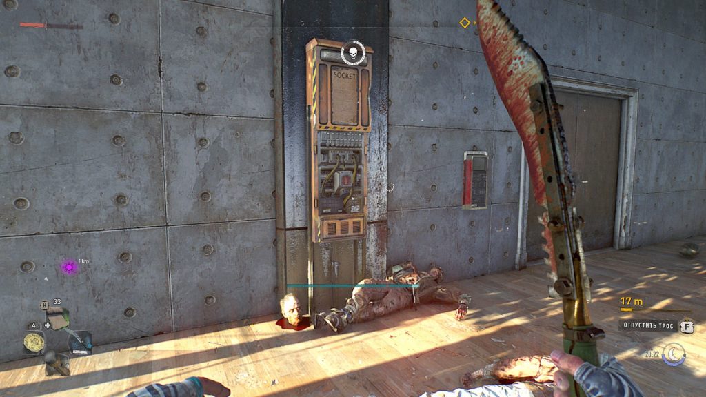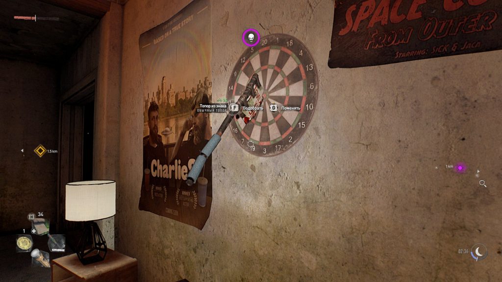 Идя дальше вдоль убежища, мы попадём в комнату с воткнутом “Топор из Дорожных знаков” в кольцо для Дарца