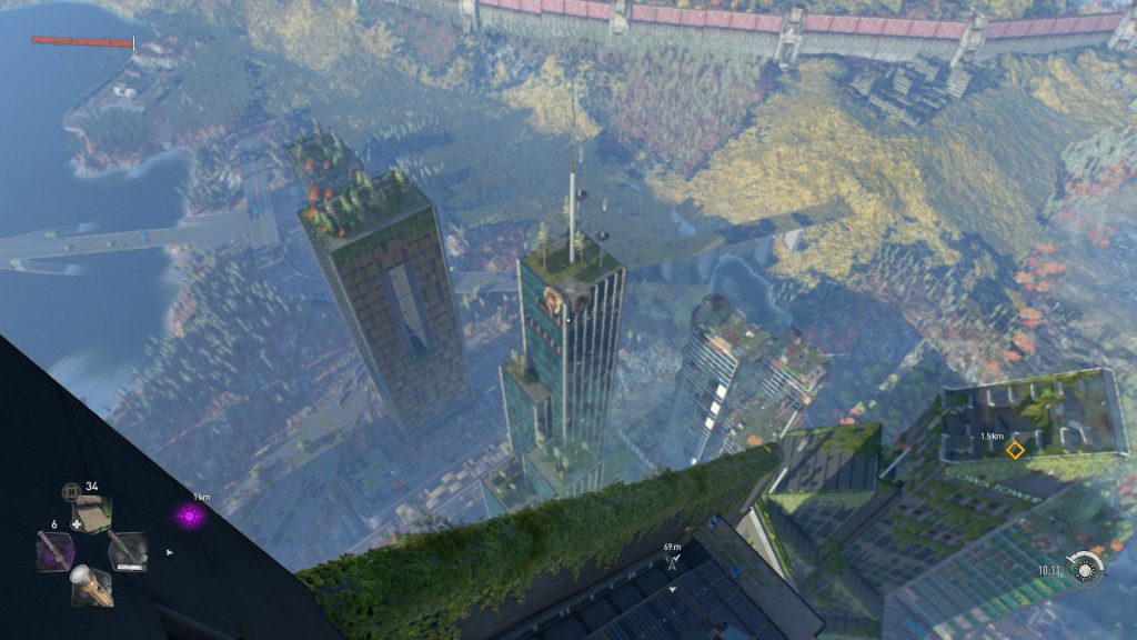 Тут прыгаем в низ, и хватаемся крюк-кошкой что бы не рипнуться, ну или же парапланом.