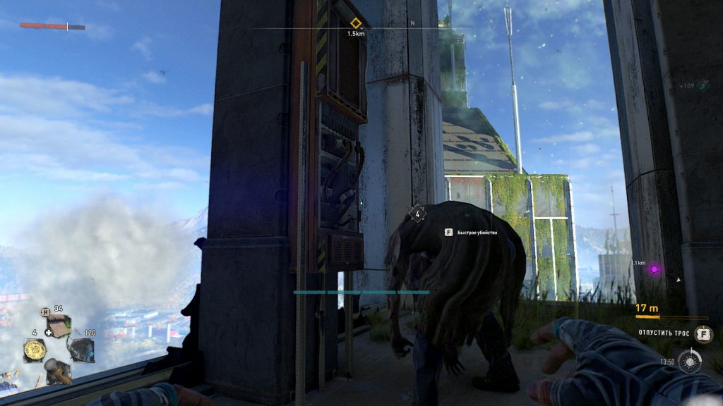 Прыгаем в низ, так же закрепляемся крюк-кошкой