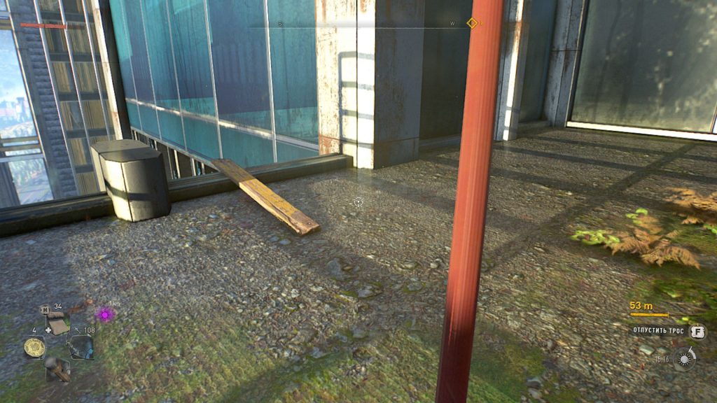 Прыгаем на 3 этажа ниже, так же помечается доской которую можно заметить если посмотреть.