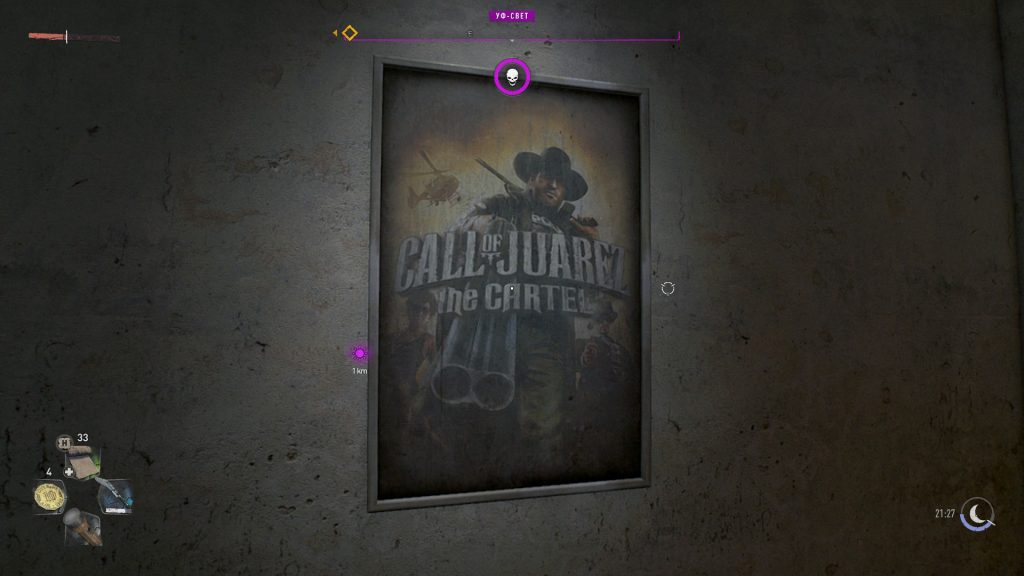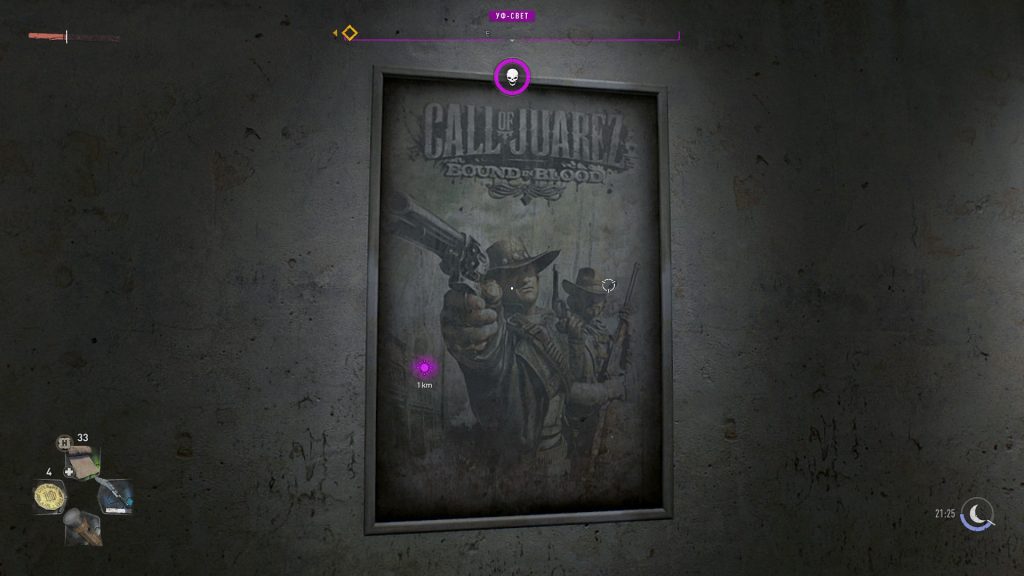 При входе в убежище по обоим сторонам будут постеры игр разработчиков, а именно 4 игры из серии “Call of Juarez”