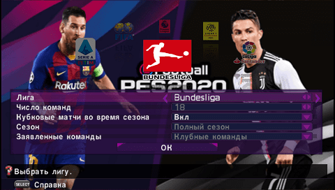 Меню в стиле eFootball PES 2020