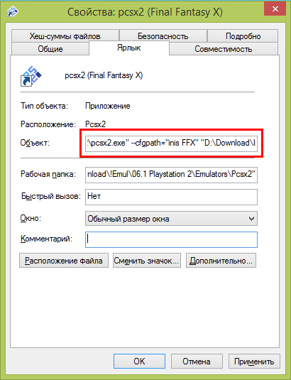 О. Для этого создайте ярлыки pcsx2.exe для каждой игры и впишите в них параметры запуска: –cfgpath=”желаемое имя папки настроек игры” “полный путь к образу диска игры“.
