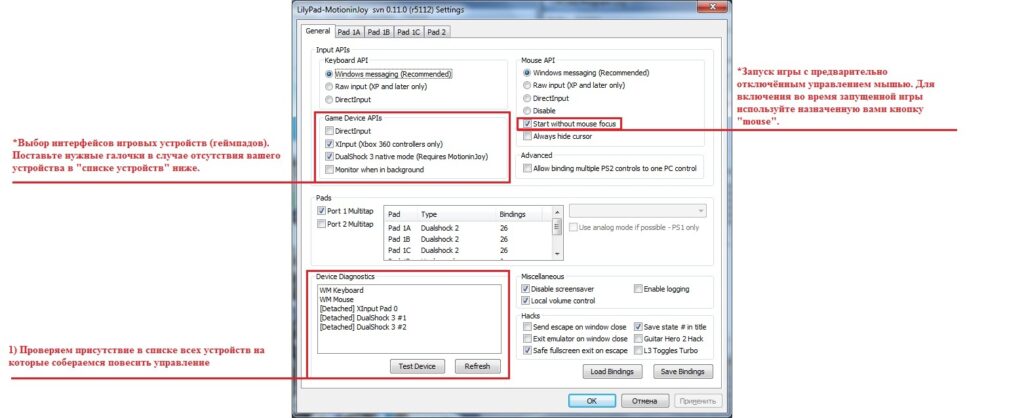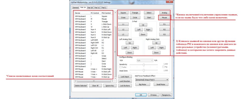 О. Настройка управления с использованием плагина LilyPad (клавиатура\мышь\геймпад):