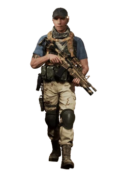 | Отношения | Эрик (подполковник) Джейсон (командир отделения) Рэйчел (Любовник/Бывший любовник; Определяющий фактор) Джоуи (товарищ по команде) Мервин (товарищ по команде) |