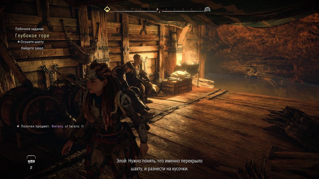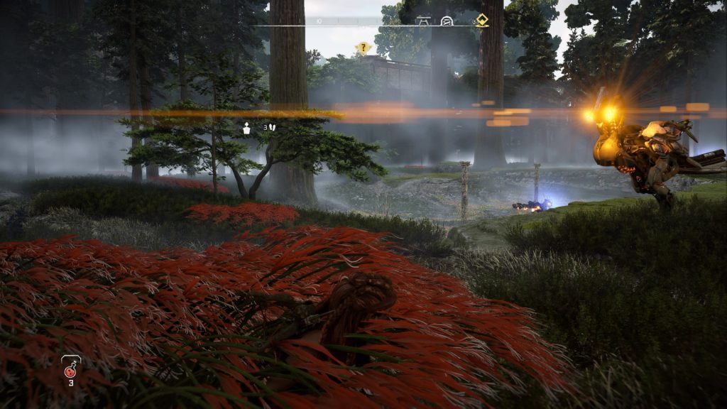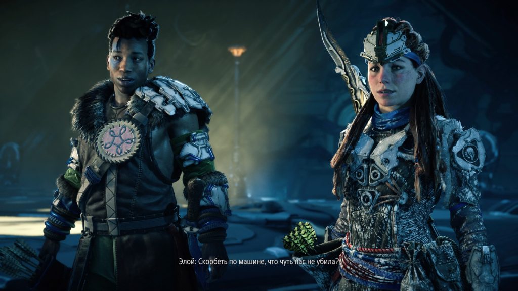 Впрочем, без заметных технических огрехов игра всё же не обошлась. Больше всего бросается в глаза то, что разработчики не смогли заставить персонажей в диалогах смотреть друг на друга: они постоянно отводят взгляд вверх и пялятся куда-то в небо. Противники (включая тех, что нужно убить по заданию) периодически проваливаются сквозь землю, а Элой застревает в анимациях. Один раз игра зависла на загрузке быстрого сохранения — никакие перезапуски не помогали. К счастью, под рукой было резервное (ручное) сохранение, отбросившее не так уж и далеко назад, но это мне повезло. Хотя на столь критический баг за всё прохождение лично я наткнулся только один раз.