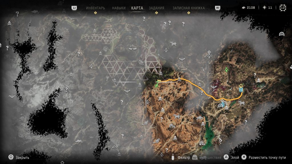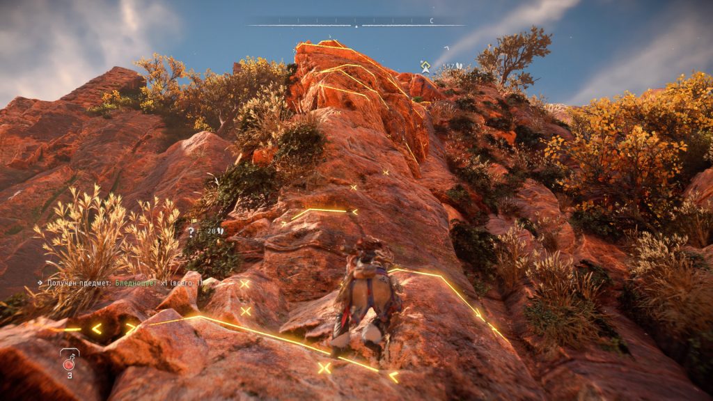 Просторный открытый мир по-прежнему забит вопросительными знаками, чтобы игрок ни в коем случае не смог пройти мимо контента. Это удобно, но такой подход напрочь лишает исследование всякой интриги и радости открытия. А приподнять завесу тайны над тем или иным регионом можно, конечно же, вскарабкавшись на вышку: игра услужливо подскажет, за какой уступ можно схватиться, и не позволит случайно сорваться вниз. The Legend of Zelda: Breath of the Wild, вышедшая вскоре после Horizon: Zero Dawn, явно вдохновила разработчиков сделать Элой более мобильной. Она теперь может планировать на щите, прямо как Линк на глайдере, и карабкаться по почти отвесным скалам. Правда, открытость мира здесь всё-таки не на сто процентов честная. Первая и вторая локации, которые нужно проходить в заданном сюжетом порядке, окружены непреодолимыми преградами, да и в миссиях регулярно встречаются невидимые стены там, куда героиня ни в коем случае не должна пролезть. Зато в остальном Forbidden West крайне дружелюбна к игроку — возможно, даже слишком дружелюбна. Можно буквально отключить голову и просто делать всё подряд. Если у вас нет нужного апгрейда, чтобы пройти конкретное место, игра об этом предупредит. Если вы застрянете, она прямо подскажет, что нужно дальше. Да и вообще если где-то в поле зрения есть какой-нибудь интерактивный объект окружения, он приблизит вас к победе. Авторы сделали всё для того, чтобы вам было удобно: игра практически ничего от вас не требует. Сложность тут могут представлять только бои.