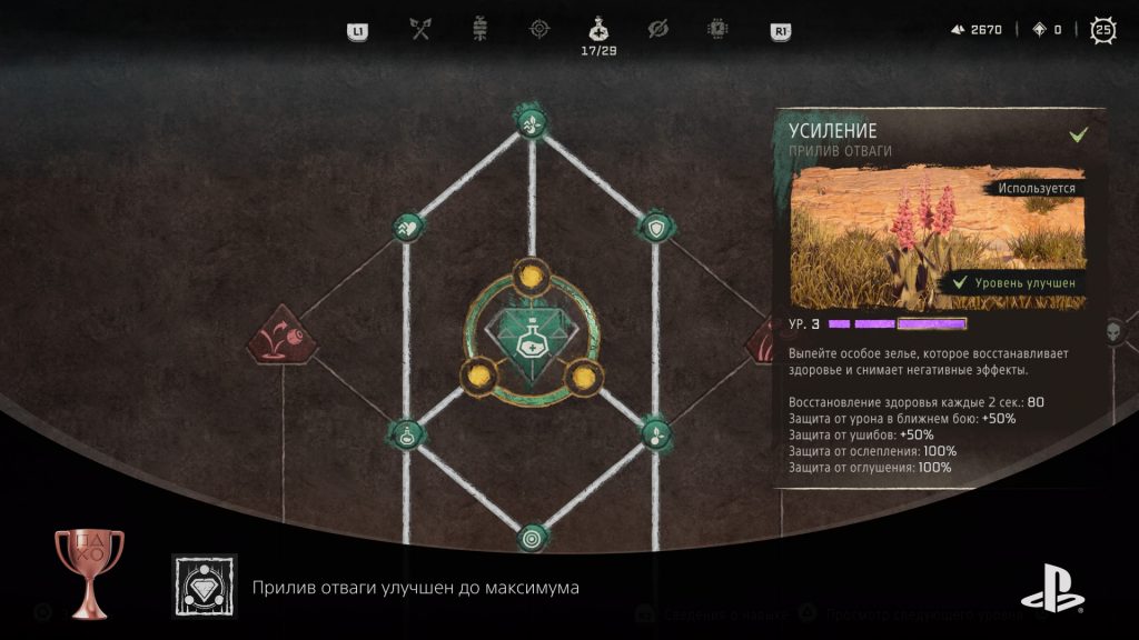 Сражения по-прежнему разрешают выбрать тактику на свой вкус. Можно забраться повыше и расстрелять врагов издали, разобраться в ближнем бою или скрытно убрать всех и каждого. Противники, как обычно, берут либо численностью, либо размерами — никак не интеллектом. На карте тут и там расставлены лагеря враждебных повстанцев — знай себе зачищай аванпосты, как в Far Cry. А за убитых врагов и выполненные задания Элой получает опыт, позволяющий улучшать различные умения. Forbidden West привнесла в традиционное древо навыков «Приливы сил» — особо мощные способности, привязанные к специальной шкале. Их активация неприятно прерывает игровой процесс продолжительной анимацией, зато эффекты радуют: один бафф заметно облегчит получение лута, другой — даст такую регенерацию, что про снадобья можно будет забыть.