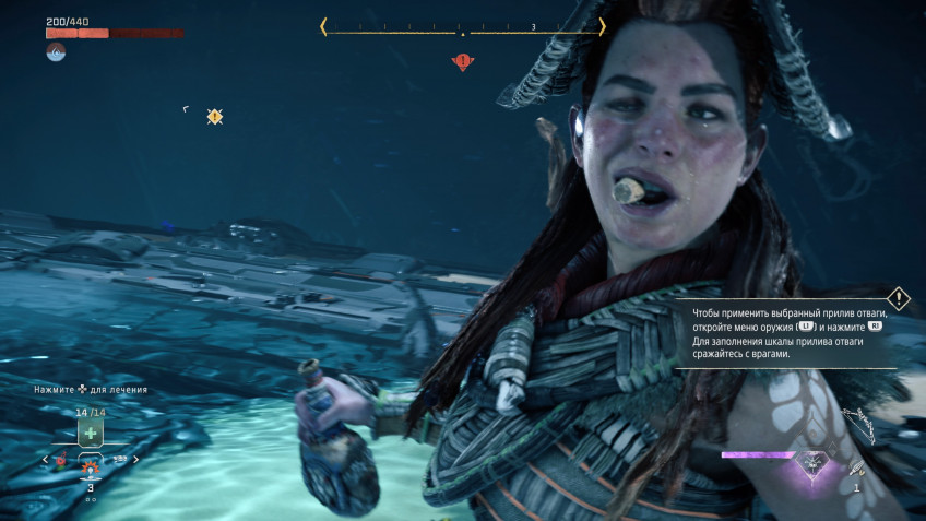В опциональных подземельях Forbidden West походит на последние игры о Ларе Крофт: нужно таскать ящики, дотягиваться до труднодосягаемых мест, рушить стены и искать рычаги. Элой внезапно научилась плавать, но под водой она беззащитна, так что ей приходится прятаться в кущах водорослей — прямо как в Shadow of the Tomb Raider