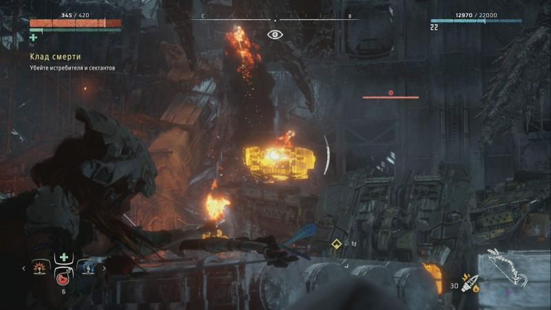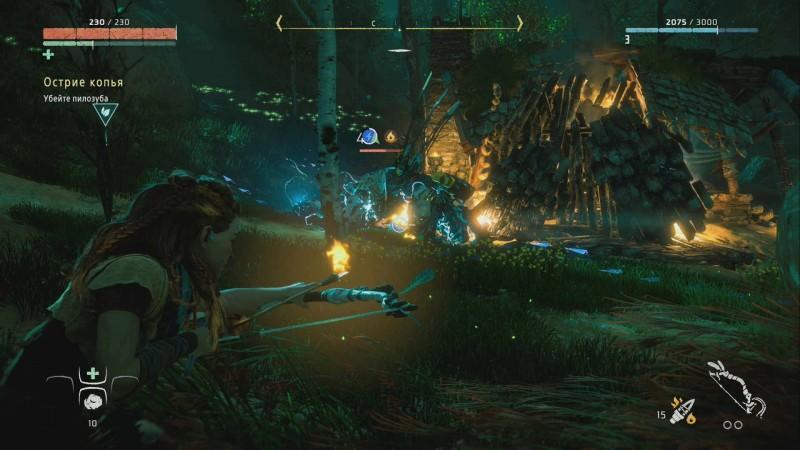 Пора плавно переходит к игровому процессу, где есть новаторство Шредингера. Выявляется это таким образом, что Guerrilla Games вырывает из других проектов какие-то механики и соединяет их в Zero Dawn. Что в итоге получается нечто новое и не похожее с другими играми. Геймплей больше подталкивает играть по стелсу, ибо каждое сражение с роботом ложное, не считая самых первых, и вырабатывает свою тактику. Всегда лучше обойти противника по кустам, при помощи Визора увидеть его направление, взобраться на какую-то гору и с криками “Лиииирой Джеееенкес”, воткнуть свое копье. А лучше осмотреться, друг где-то собраны бревна и их можно покатить прямиком на противника.