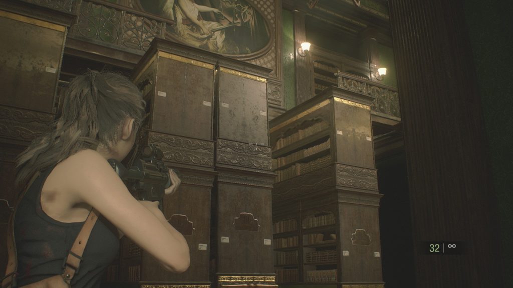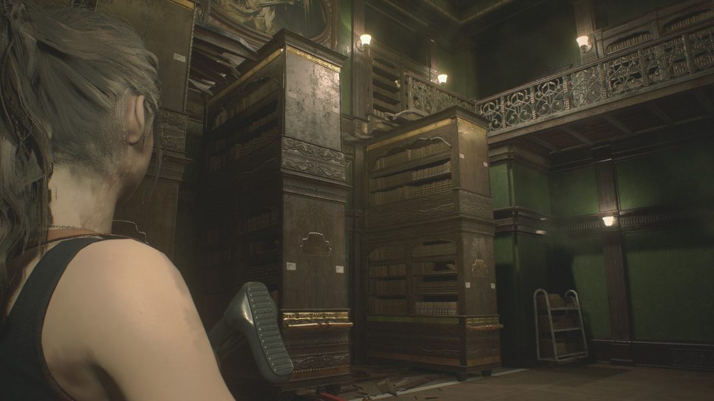 В ходе прохождения игры, первый раз попадая в библиотеку, нужно сразу выставить стеллажи как показано на скриншоте
