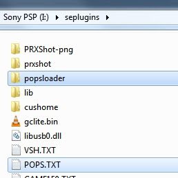 Откройте POPS.TXT с помощью блокнота и измените «ms0:/seplugins/popsloader/popsloader.prx 1» на: ef0:/seplugins/popsloader/popsloader.prx 1.