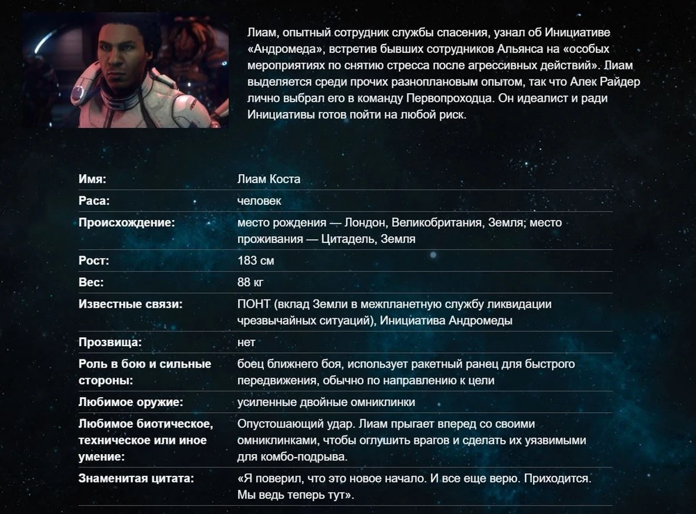 | Встречается в | Mass Effect: Андромеда — Инициация (упоминание) Mass Effect: Andromeda |
