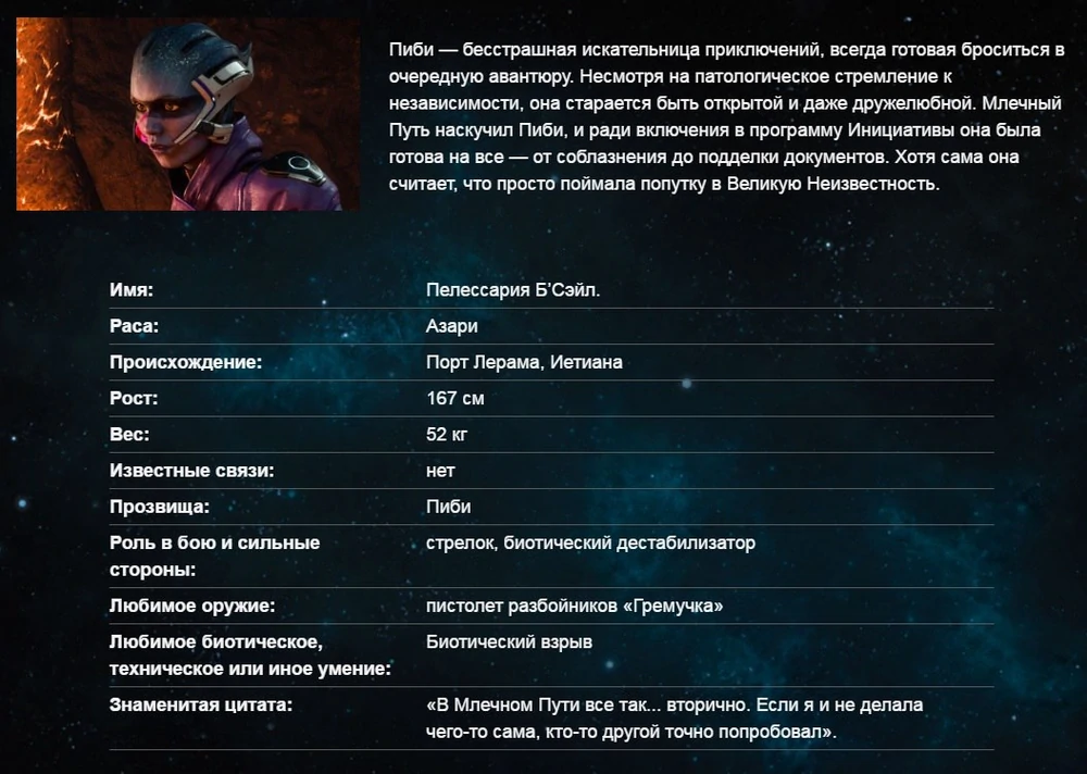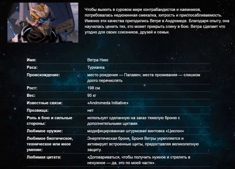 | Встречается в | Mass Effect: Андромеда — Инициация Mass Effect: Андромеда — Восстание на «Нексусе» Mass Effect: Andromeda |