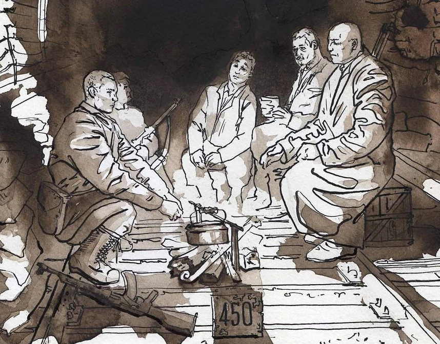 В декабре 2033 года Андрей спасает от красных чекистов новоприбывшего на станцию Артёма, запирая парня в своей квартире. Мастер объясняет герою, что путь в Полис только один — через линию фронта между красными и фашистами. Выбраться со станции очень сложно, так как она наводнена войсками и сильно охраняется. Единственный шанс: спрятаться в багажном отсеке дрезины, входящей в состав поезда с добровольцами, отправляющимися на фронт; после того, как поезд минует блокпосты, Артём будет свободен и сможет продолжить свой путь.
