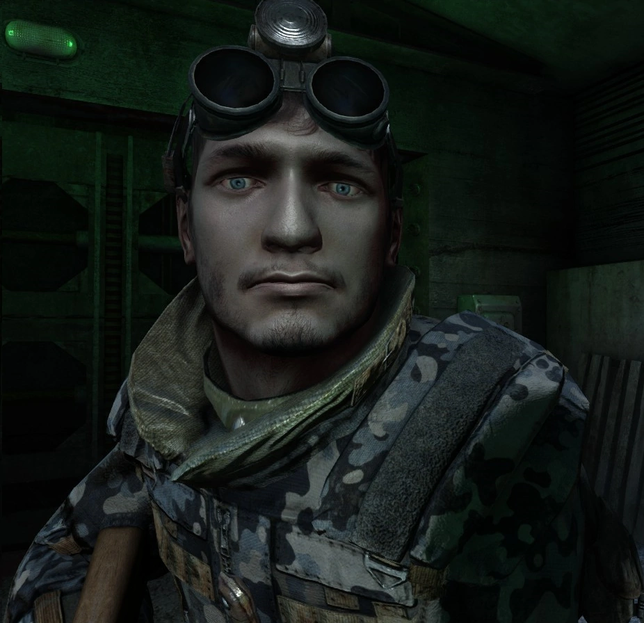 Мужчина лет сорока, левая часть лица в царапинах. Легко бронирован. На правом плече наплечник с шипами. Носит шлем советского мехвода и кожанное пальто с рюкзаком. В конце появляется переодетым в форму фашиста, отдавая шлем врага главному герою.